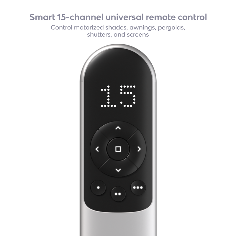 Smart 15-channel universal remote-control for motorized shades, awnings, pergolas, shutters, and screens